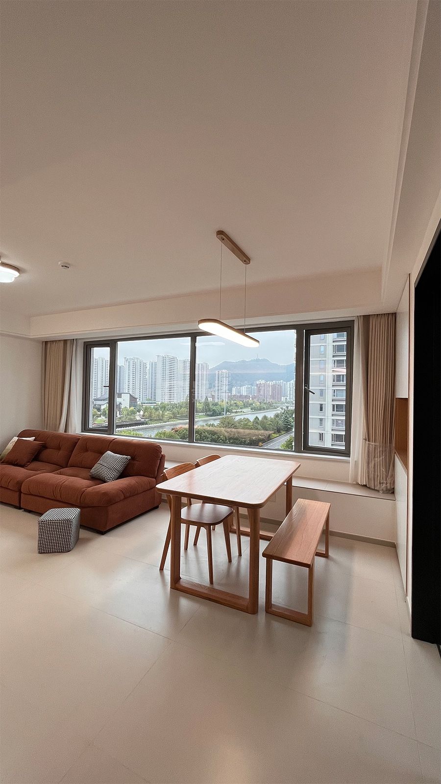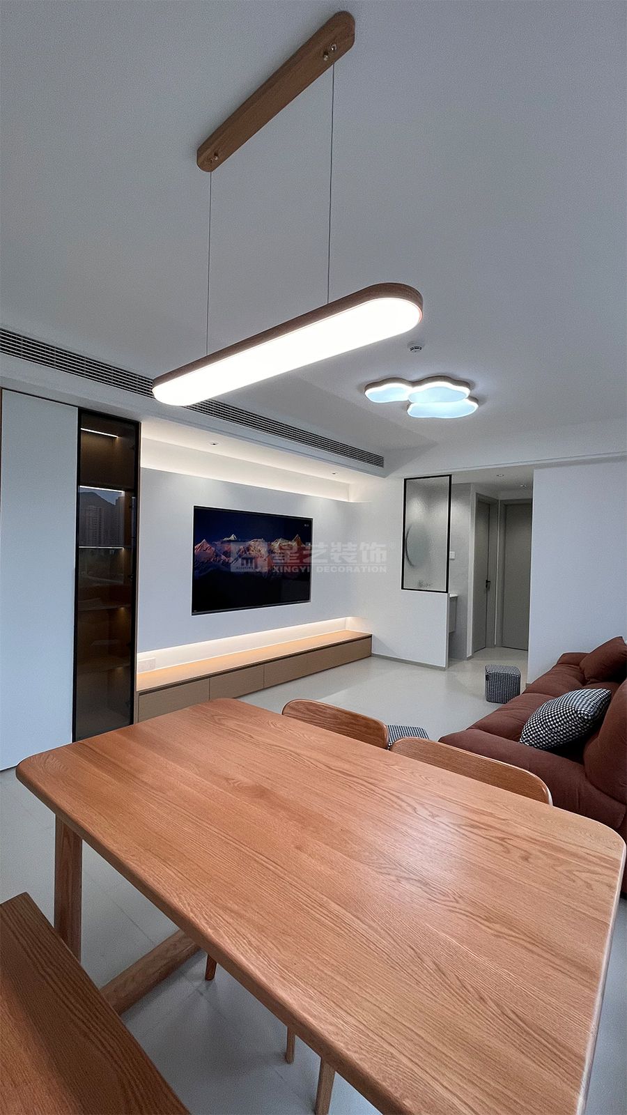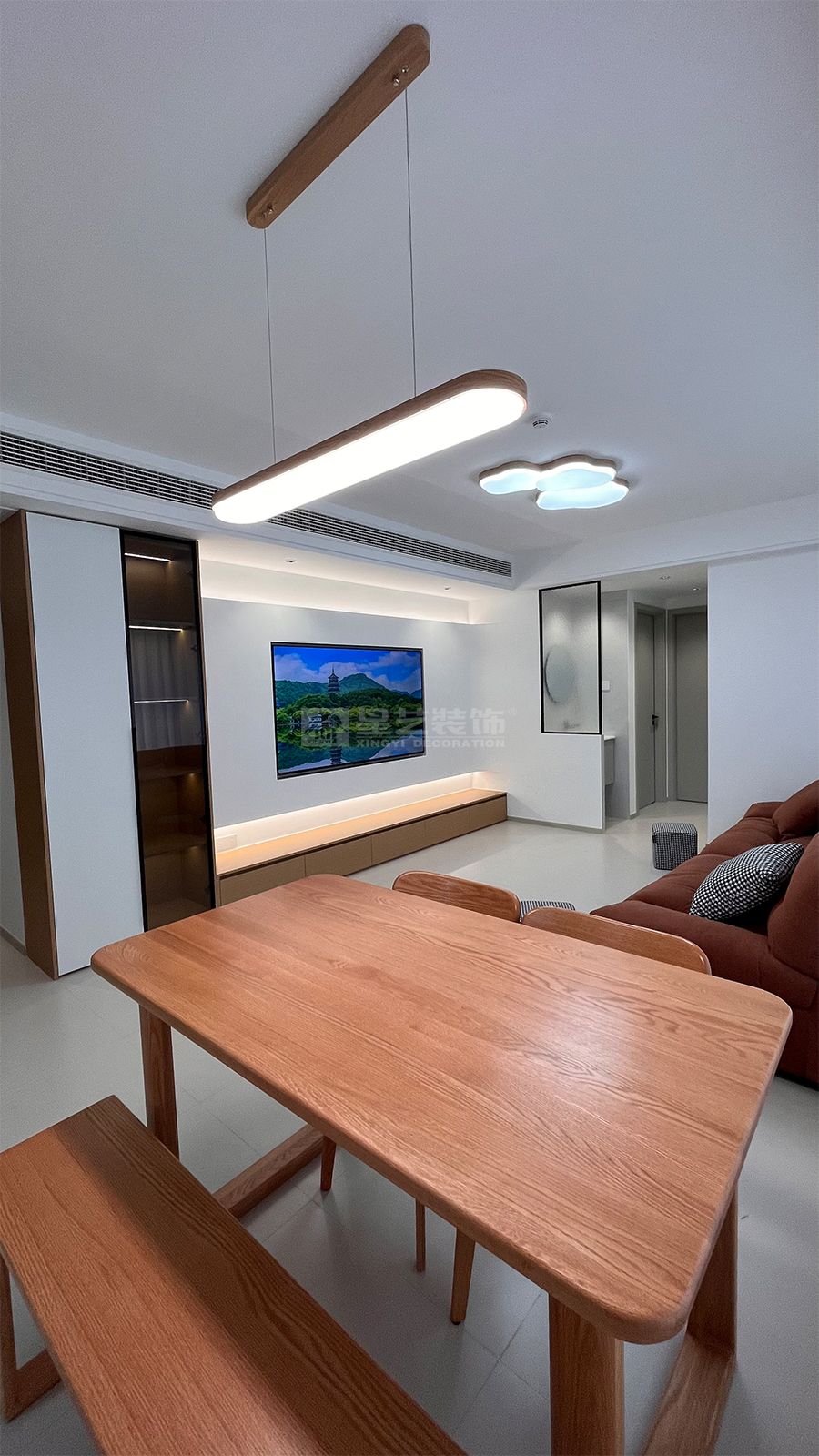 以极简主义为基底,用温暖的木色与柔和的大地色调消解都市住宅的冰冷感,同时通过通透感营造,让生活场景自然流动